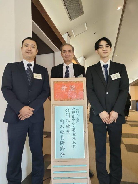 リウエン商事にも4月1日から2名の新入社員を迎える事ができてとても喜ばしい事です。 4月4日(火)ユインチホテル南城で行われた沖縄県中小企業家同友会の第34回開催「合同入社式・新人研修会(1泊2日)」参加させて頂きました。今年は34社から94人の新入社員が参加し、期待と不安の入り交じった面持ちで壇上にて各社代表者から辞令書を受け取りました。