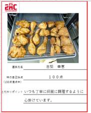 こだわりポイントは「丁寧に1pc1pc想いを込めて調理!」連覇を目指しました!写真の通り、見栄えも、揚がりも申し分なく、おいしいチキンをつくり、見事チャンピオンに輝きました。