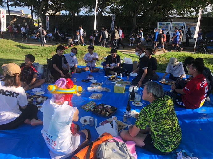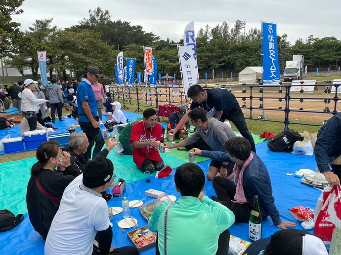 毎回、スタートからゴールまで沿道の応援に背中を押され、みんな自分の目標まで頑張ました。完走後は、応援をしてくださった皆さんも含め 一年ぶりの再開を喜び、楽しく飲み語りました。